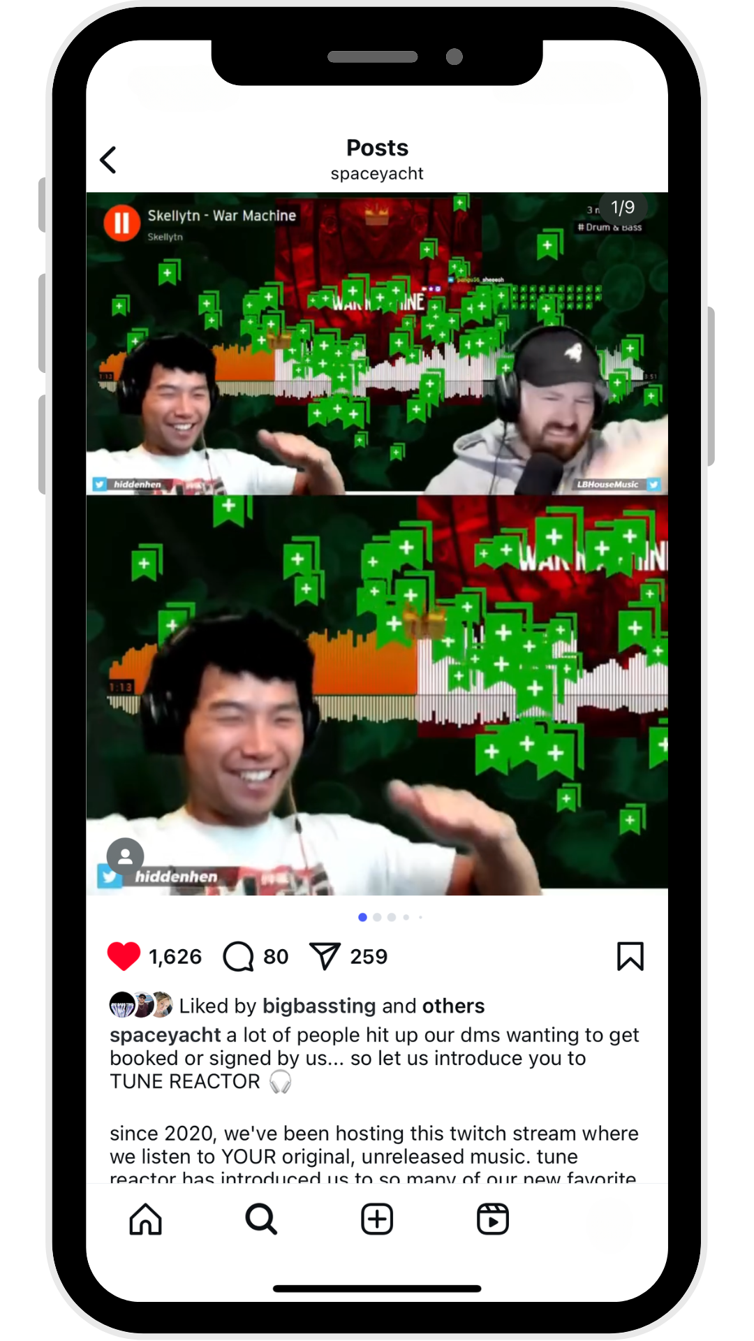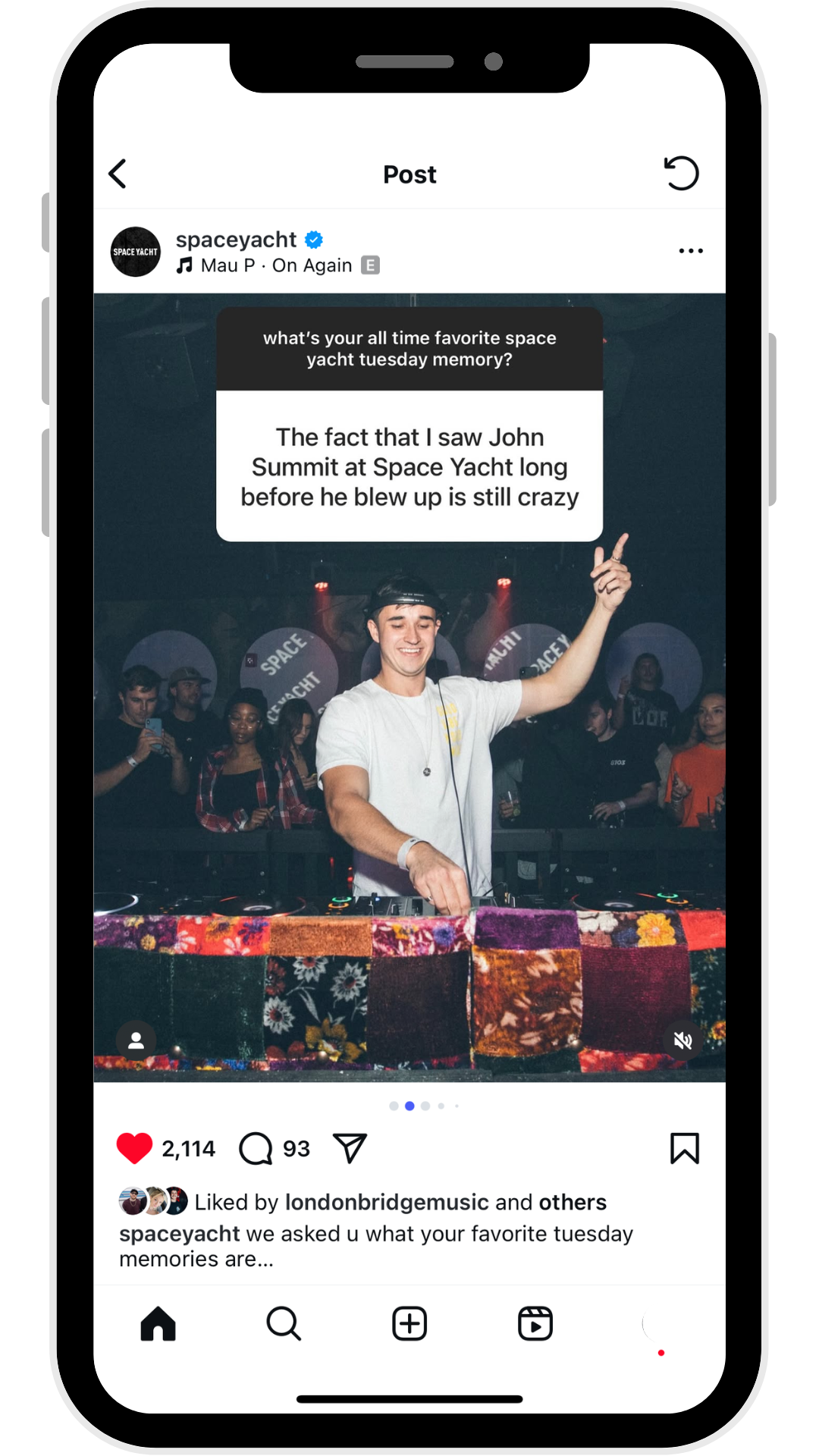 Championing emerging artists is core to Space Yacht’s DNA. I produced social content that spotlighted rising talent, shared their growth stories, and integrated clips from our Tune Reactor demo series. These posts positioned Space Yacht as a tastemaker and supported the careers of artists on the come-up.